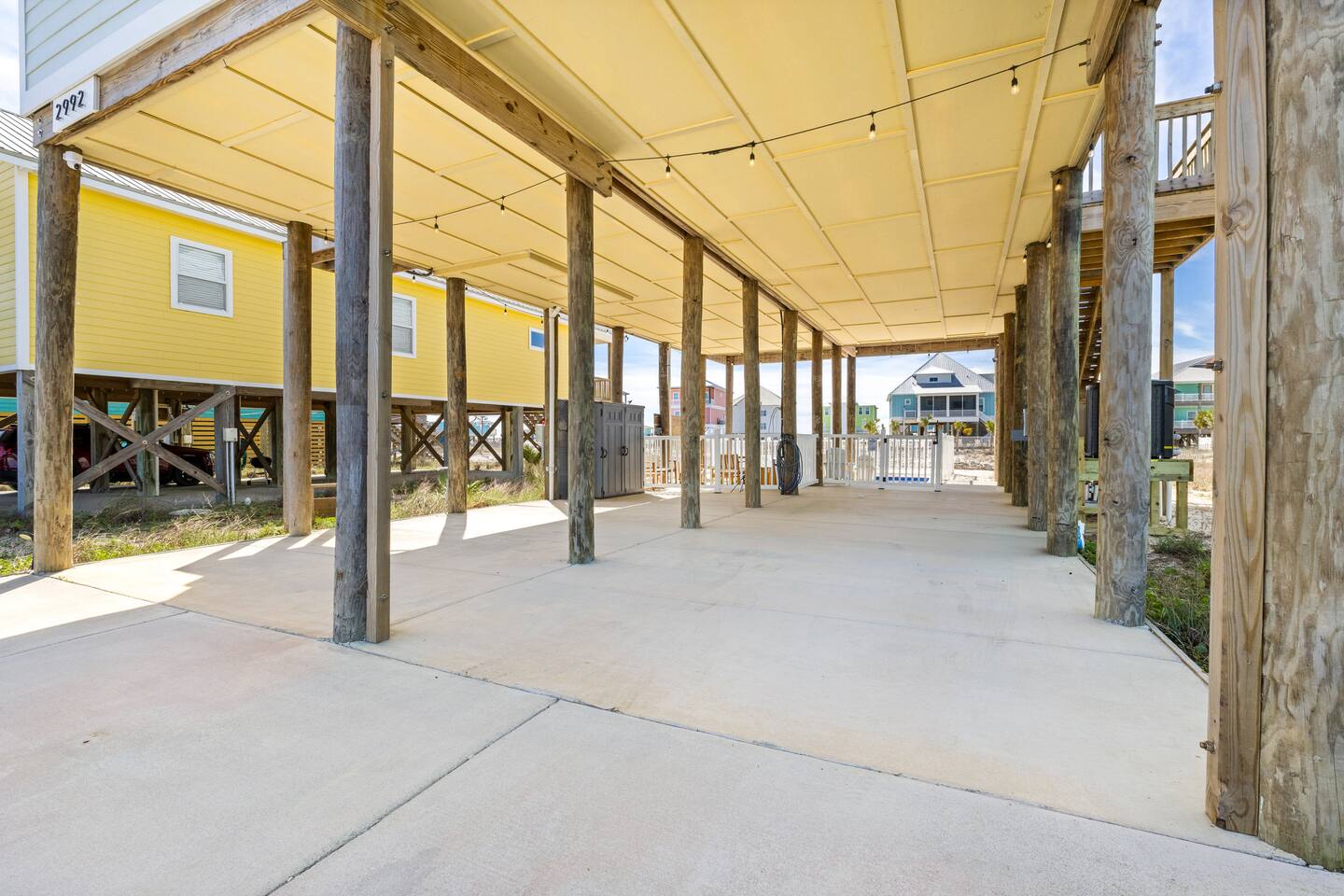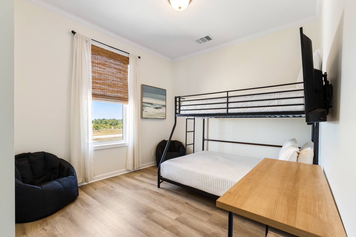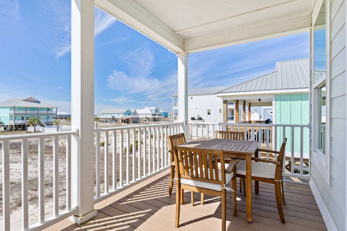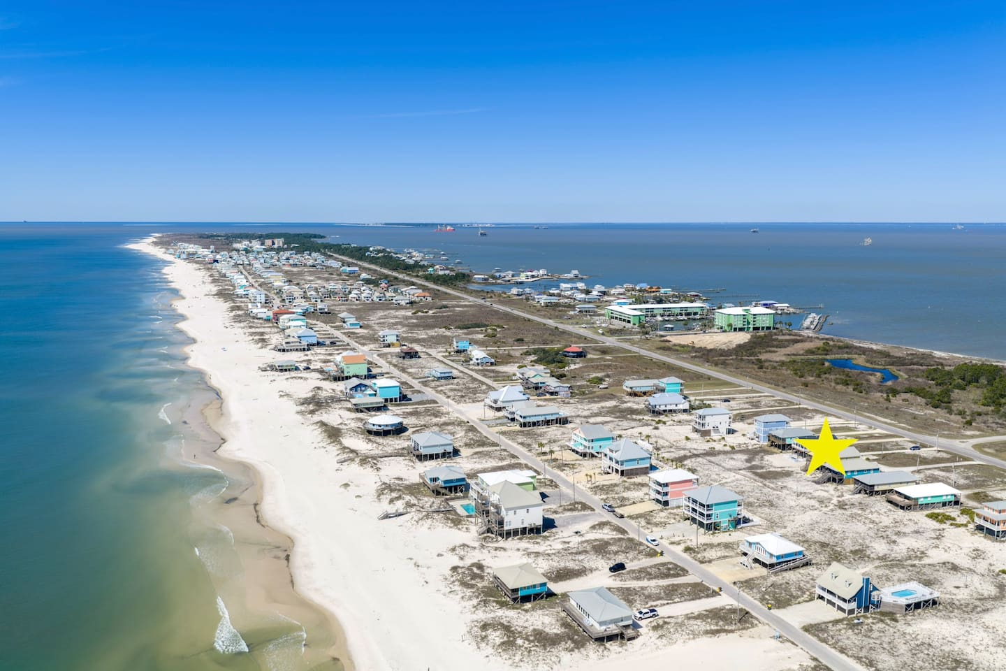 Living & Dining: Enjoy an airy, open-concept living area flooded with natural light. Relax in the cozy lounge, or step out onto the balcony to soak in the Gulf breezes and natural scenery. Chef’s Kitchen: A dream for cooking enthusiasts! Features stainless steel appliances, massive counter space, and everything you need for a fresh seafood feast. Dining: Seating for 4 at the table plus additional space for social gatherings. Bedrooms & Bathrooms: Primary Suite: Retreat to a King-size bed and your own flat-screen TV. The en-suite bathroom features a large vanity and a luxury walk-in shower with a built-in bench. Guest Suite 1: Features a Queen-size bed, TV, and a private balcony boasting peaceful views of the Bay. Guest Bedroom 2 (The Kids' Den): A fun space with a Twin-over-Full bunk bed and its own TV. Bonus Room: A versatile 4th private sleeping area with a Twin bed, Twin trundle, and a full-size washer/dryer. Guest Bathroom: Centrally located with a clean bathtub/shower combination. Outdoor Living & Beach Access: Private Pool: Splash or float in your own private heated and cooled pool—a rare find in Fort Morgan! Easy Beach Access: A flat, 5-minute walk (approx. 400 yards) takes you to the Anderson St. beach access. We provide a beach cart with balloon tires to make hauling your gear effortless. Parking: Ample covered parking under the house for 4+ vehicles. Other things to note Dog-Friendly: Fort Morgan is one of the few local beaches that allows dogs on the sand! We welcome 2 well-behaved dogs with a non-refundable pet fee. Guests will be charged for any damage caused by dogs. Dogs must remain on a leash outside. Tech: High-speed Free WiFi throughout the home. Safety & Age: You must be 25 years or older to rent. No smoking allowed.