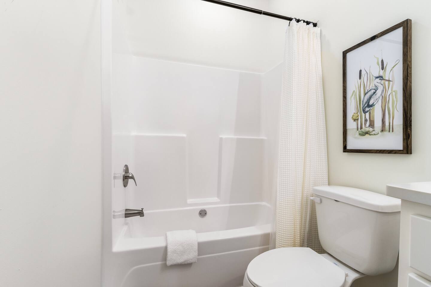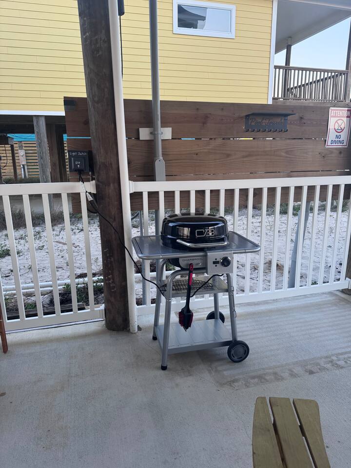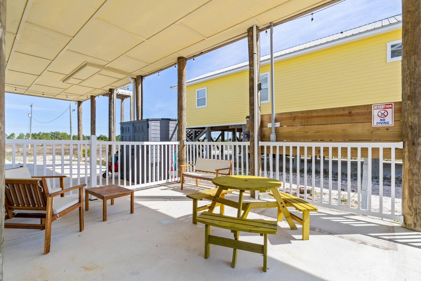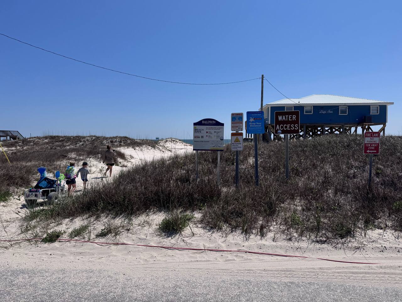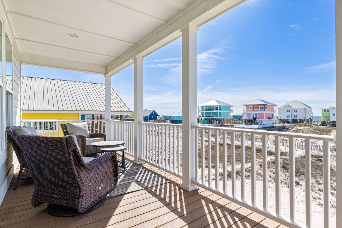 Living & Dining: Enjoy an airy, open-concept living area flooded with natural light. Relax in the cozy lounge, or step out onto the balcony to soak in the Gulf breezes and natural scenery. Chef’s Kitchen: A dream for cooking enthusiasts! Features stainless steel appliances, massive counter space, and everything you need for a fresh seafood feast. Dining: Seating for 4 at the table plus additional space for social gatherings. Bedrooms & Bathrooms: Primary Suite: Retreat to a King-size bed and your own flat-screen TV. The en-suite bathroom features a large vanity and a luxury walk-in shower with a built-in bench. Guest Suite 1: Features a Queen-size bed, TV, and a private balcony boasting peaceful views of the Bay. Guest Bedroom 2 (The Kids' Den): A fun space with a Twin-over-Full bunk bed and its own TV. Bonus Room: A versatile 4th private sleeping area with a Twin bed, Twin trundle, and a full-size washer/dryer. Guest Bathroom: Centrally located with a clean bathtub/shower combination. Outdoor Living & Beach Access: Private Pool: Splash or float in your own private heated and cooled pool—a rare find in Fort Morgan! Easy Beach Access: A flat, 5-minute walk (approx. 400 yards) takes you to the Anderson St. beach access. We provide a beach cart with balloon tires to make hauling your gear effortless. Parking: Ample covered parking under the house for 4+ vehicles. Other things to note Dog-Friendly: Fort Morgan is one of the few local beaches that allows dogs on the sand! We welcome 2 well-behaved dogs with a non-refundable pet fee. Guests will be charged for any damage caused by dogs. Dogs must remain on a leash outside. Tech: High-speed Free WiFi throughout the home. Safety & Age: You must be 25 years or older to rent. No smoking allowed.